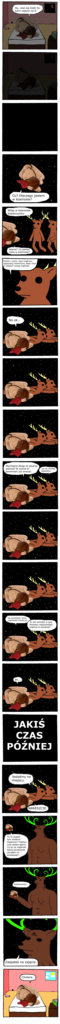 Tak dla wyjaśnienia: opinie bohaterów moich komiksów niekoniecznie pokrywają się z moimi. Sam kiedyś chciałem zostać ninja i nadal uważam, że to piękna profesja. Znam kilku ninja i wszyscy to bardzo mili goście, można pogadać i tak dalej. Chociaż w sumie muszę przyznać, że raz doświadczyłem przez jednego z nich nieprzyjemnej sytuacji. Byliśmy razem w tesco kupić jogurt i 5 kilo frytek aż tu nagle ochroniarz do nas podbiega i nas łapie z okrzykiem "pójdziecie ze mną drapichrusty!". I co się okazało? Kolega ninja skitrał frytki i jogurt za pazuchą bo te świry noszą zawsze tak przy sobie te swoje miecze, szurkieny itd. i po prostu automatycznie jak coś ma przenieść to to chowa. Muszę przyznać, że samo już to było rzeczywiście podejrzane i można by posądzić nas o chęć kradzieży. W precyzyjnej ocenie naszych prawdziwych intencji nie pomogło też z pewnością to, że kolega miał czarną maskę na ryju, bo oczywiście te półgłówki muszą je nosić 24h na dobę. No to ja próbuje załagodzić sytuacje, śmieję się, mówię: nie, nie Panie ochroniarzu kolega to nie żaden złodziej, tylko po prostu ninja, to nieporozumienie... A TEN WAŁKOŃ HYC NA PÓŁKĘ WSKAKUJE. I potem na następną, przeskakuje kasy i drąc się "Nigdy mnie nie złapiecie!" wyskakuje z okna na zewnątrz rozbijając szybę własnym ciałem. Chyba pomyślał, że ochroniarz to też jakiś ninja tylko, że z innego klanu i chce go załatwić. Cala sytuacja skończyła się tak, że spędziłem noc w areszcie i musiałem zapłacić za rozbitą szybę. Cholerni ninja, NIECH WAS PIORUN TRZAŚNIE.
